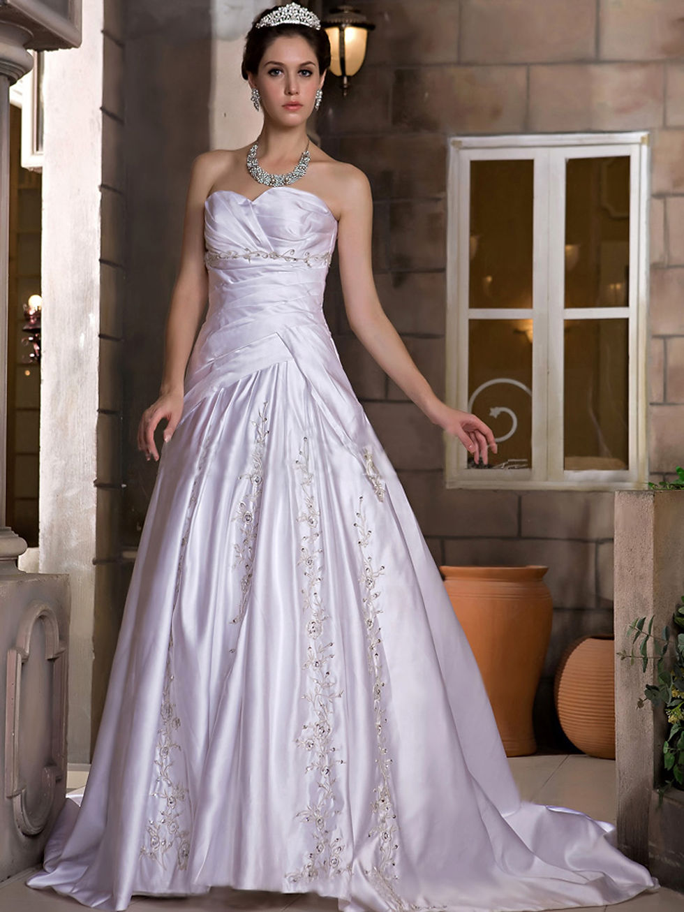 Свадебное платье А-силуэта вырезом в форме сердца из атласа