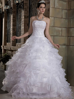 Свадебное платье бального кроя с вырезом в форме сердца из атласа и органзы