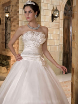 Свадебное платье бального кроя со шлейфом из атласа и органзы