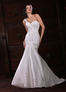 Trumpet/ Mermaid One Shoulder Court Train Elastic Woven Satin Wedding Dress